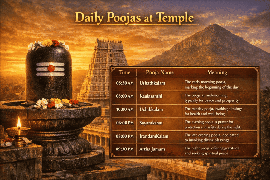 Daily Pooja times at Arunachala Temple in Tiruvannamalai