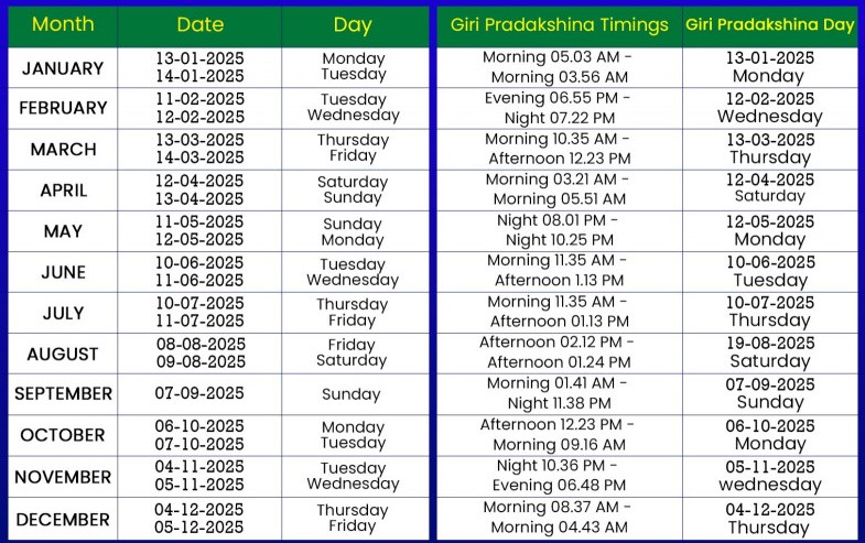 - On heavily crowded Pournami nights, there may be restrictions or heavy traffic